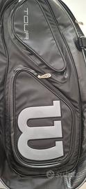 Borsa da tennis impermeabile.Ha 3 ampi scomparti che possono contenere 5 racchette ciascuno in cui uno speciale scomparto Thermoguard 2.0. In piu ci sono altri 4 scomparti più piccoli. La borsa Wilson Tour V da 15 racchette è robusta e sagomata, il che crea una protezione simile a un guscio per le vostre racchette da tennis.