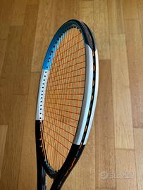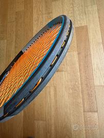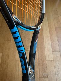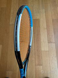 Wilson Ultra 100 v3 Piatto 100, 16x19 Peso 300 g, bilanciamento 32 cm Grip L4, grip originale sostituito con Wilson feather thin (più sottile). Usata poco. Solo una sverniciatura superficiale visibile sul telaio (v. foto). Per il resto in ottime condizioni. Incordata con Kirschbaum Super Smash 1.23, 22 kg.