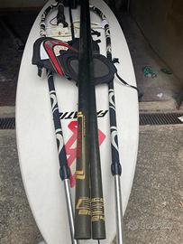Windsurf Fanatic Scark 145. Completo di boma,albero, due vele con sacca ( 7.1 con camber e 4.9. ), trapezio, carrello e sacca per contenere il tutto. Usato solo un paio di volte. Come nuovo