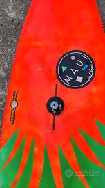 Tavola Windsurf custom, lunghezza 2.80 mt, c.ca 85 lt, abbastanza vissuto, compreso di piede d'albero, completo di strap. Causa inutilizzo.