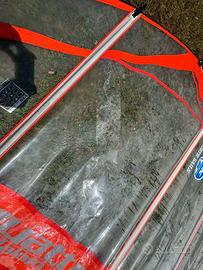 Tavola da windsurf Roberto Ricci Design free ride (275x70 - 120 litri) con albero in carbonio scomponibile e boma vario Tiger S (165 - 215). Vela North Sails mq 6,5 quattro slalom. Piccole imperfezioni. Ottimo per passare di livello in modo economico.