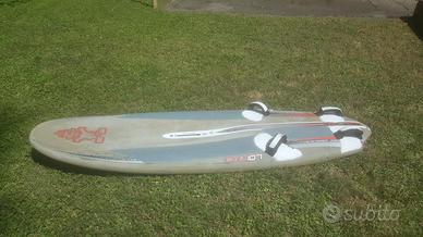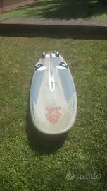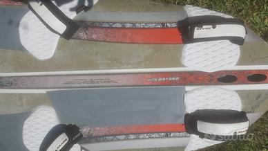 Tavola slalom anno 2012, riparata per delaminazione (la zona grigia in foto è la parte riparata; ancora utilizzata regolarmente, peso originale, sacca inclusa nel prezzo, pinna non inclusa. Visibile Roma, zona Laurentina-Dalmata.