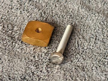 Vendo come da foto: - Piastra Antirotazione in Acciaio x fissaggio Straps x viti 6mm 10 pz. 16 euro - Vite x Straps Tavola Windsurf acciaio 6x30 croce 10 pz 16 euro - Sideon Vite + Dado Ottobe a stella m4x30 mm pinna attacco US Box 1 pz 3 euro (vite con dado) - Unifiber Dado a T in Ottone x Base Piedino M8 Windsurf 1 pz. 2,5 euro comprate e mai utilizzate ( pochi pz) - No Perditempo - Massima Srietà - Prezzo Non Trattabile