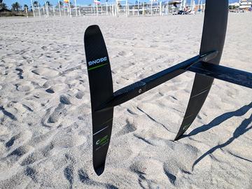 foil: front quasi come nuova, stab piccolissimi segni sulla vernice, fusoliera e palo qualche segno. Ha i tappini originali per non fare entrare acqua nel mast, ma dato che l'acqua entrava comunque li ho siliconati. Foil sempre smontato dopo l'uso per evitare la corrosione galvanica tra acciaio e alluminio.