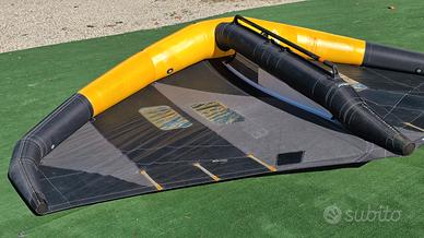 Vendo Wing Rrd Evo Gold 5,5 2024 Alula. Le maniglie sono utili quando viaggi tipo in aereo perchè la pieghi e ci sta nella stiva. Riparata solo sul canopy da professionista top con tessuto delle stesse caratteristiche dell’originale (peso specifico, ecc), dimostrabile da fattura (esteticamente si vede poco). USATA SOLO IN ACQUA DOLCE. Funzionalità perfetta. Completa di maniglie carbon e/o boma carbon, leash e zaino tutto originale. Prezzo di listino 1489 + 180 (boma).