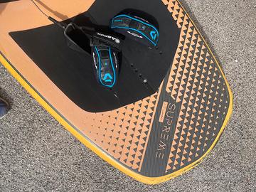 Comprensiva di straps duotone nuove, leash sabfoil nuovo e sacca gong.