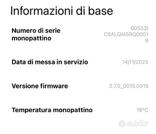 Vendo monopattino elettrico Xiaomi Electric Scooter 5 in condizioni pari al nuovo, utilizzato pochissimo. 📅 Messo in servizio il 14/11/2025 📏 Solo 16,2 km percorsi totali 📦 Scatola originale disponibile 🧾 Scontrino presente 🛠️ Garanzia valida su tutto, comprese le gomme, per 1 anno Il monopattino è praticamente nuovo, usato raramente e sempre conservato con cura. Perfettamente funzionante e pronto all’uso, ideale per spostamenti urbani e quotidiani. ✔️ Pari al nuovo ✔️ Chilometraggio bassissimo ✔️ Garanzia attiva ✔️ Completo di caricatore originale ✔️ Nessun difetto meccanico Prezzo: € 390 Disponibile per visione e prova. Ritiro a mano Contattami per qualsiasi informazione