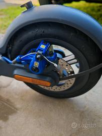 Monopattino usato in buono stato, munito di carica batterie originale e 2 pneumatici con camera d'aria nuovi all'attivo circa 700km nelle Foto si vede la descrizione batteria e chilometraggio, motore da 600w ottimo per affrontare qualche piccola salita senza problemi, freno a disco con pinza di colore blu, presenta un piccolo graffio a destra della pedana si può vedere dalle foto
