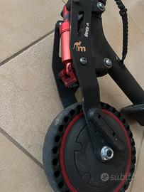 Il monopattino è un pezzo pregiato perché monta il kit completo di sospensioni professionali MONORIM (riconoscibili dal logo con il canguro/M), che da sole hanno un valore di mercato superiore ai 120€. Rendono la guida estremamente fluida e sicura su ogni terreno.