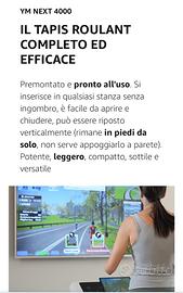 YM Tapis Roulant Elettrico Pieghevole Fino a 16 kmh/, Brand Italiano, Inclinazione, APP Interattive Kinomap Zwift Bitgym, Salvaspazio, Sensori Cardio, Salvaspazio, 12 Programmi, NEXT 4000 Your Move