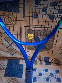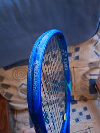 Vendo per cambio modello, poche ore di gioco. Ricevuta d’acquisto fine 2025 disponibile. Telaio solido, segnalo solo un salto di vernice sulla testa per urto accidentale: il danno è puramente estetico e non pregiudica le prestazioni né la tenuta del telaio in fase di incordatura. La parte interessata è comunque facilmente sostituibile e rimovibile. Grip originale come nuovo perché ho sempre usato overgrip. Antivibrazioni incluso in omaggio.