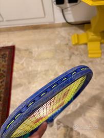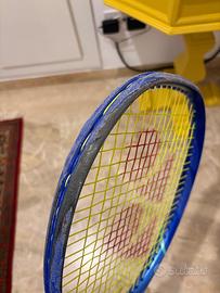 Vendo racchetta Yonex Ezone 98 305gr del 2025 manico L2. La racchetta presenta segni di usura nella testa, ma si tratta solamente di vernice andata via; il telaio non è danneggiato ed è perfettamente utilizzabile. Grip in cuoio originale Yonex.