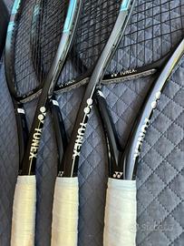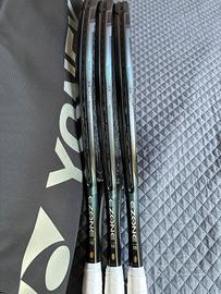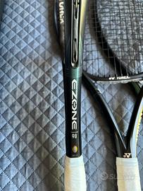 Vendo tripletta di racchette Ezone 98 acqua night black, 305 gr/315 mm, manico 2. Telai utilizzati un annetto, in buonissime condizioni, con normali segni di gioco. Incluso nel pacchetto borsone Yonex nero, capienza 9 telai, con scomparto termico, come nuovo. Foto in dettaglio per chi seriamente interessato. Spedizione disponibile o consegna a mano su Milano e limitrofi.