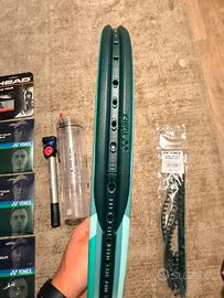 Vendo per regalo non gradito yonex percept 97 da 310gr piatto 97, la racchetta è NUOVA ha 1 ora di gioco, se siete realmente interessati posso mandare altre foto non ha nemmeno un micro graffio, inoltre vendo grommet nuovi della racchetta, per sostituirli quando sara rovinata, vendo corde yonex strike 1.25 yonex poly tour rev 1.25 e head lynx tour 1.25, e vendo pressurizzatore x4 palline head Preferisco vendere intero kit prezzo ASSOLUTAMENTE NON TRATTABILE già scontato per intero kit insieme !! Solo Racchetta 150€ Corde a pezzo 6€ Pressurizzatore 25€ Gremmets 20€ Il prezzo dell’annuncio fa riferimento a tutto il kit sopra elencato