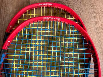 Coppia di racchette da tennis Yonex Vcore originali, acquistate a settembre 2024, ovale 98 pollici, manico L3, peso 305gr, bilaciamento 315, inerzia 311, spessore telaio 23/23/21, tenute con religiosa cura, telaio perfettamente integro. Mai sbattuta a terra, vendo 120 euro una racchetta singola, 200 euro per entrambe le racchette. Fornisco custodia originale yonex per ciascuna racchetta, antivibrazioni originale yonex e grip nuovo sul manico