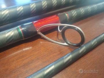 Vendo bellissima canna da surfcasting, yuki italy light 4.50m 75-150gr. Canna super versatile, adatta al mare calmo ma anche utilizzabile in fase di scaduta, dato il suo ampio casting fino a 150g. La canna è dotata di una vetta ibrida, la quale conferisce alla canna un estrema sensibilità in punta, in modo da notare anche la minima mangiata. È una canna ad azione semi parabolica e allestita con placca ed anelli fuji alconite. La canna è stata tratatta sempre in maniera maniacale, gli anelli non presentano ossido in quanto lavati dopo ogni battuta di pesca. DISPONIBILE SPEDIZIONE