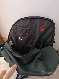zainetto porta rollerblade e non solo, spessore della base 22cm, altezza 42cm, larghezza inferiore 40 cm, larghezza superiore 26 cm con cerniera molto ampia per l'inserimento agevole dei rollerblade, parti areate, tasca per acqua, cerniera frontale, tasca interna.