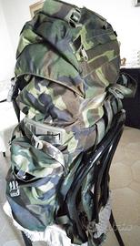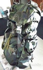 1 zaino alpino militare senza zainetto anteriore aggiuntivo. Usato pochissimo. Lo zainetto aggiuntivo anteriore non c'è. misure larghezza 35/40 altezza 70 profondità 20. Prezzo 60