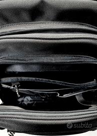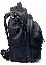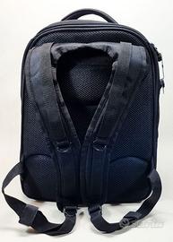 Pari al nuovo, senza difetti, robusto, spallacci imbottiti, dorso spesso e traspirante, cm 42x33x25, peso kg 1,540. Può contenere un computer da 13 pollici protetto da divisori spessi e fino a 15 pollici sporgente ma zip zaino chiudibile. In totale conta 7 scomparti/tasche con zip e vari altri senza. Il lucchetto originale con portachiavi del produttore non sono disponibili, quello in foto non è affidabile.