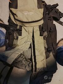 vendo zaino usato poco in ottime condizioni sia le cuciture che il materiale di cui è fatto,l' avevo pagato 280 euro si tratta della famosa marca francese Millet modello Nanda di 60 litri più estensibile con soffietto superiore di altri 10 litri diventando di 70 ottimo per chi si deve portare dietro anche eventuale attrezzatura da ferrata o materiale per arrampicata,io l'ho usato solo per fare trekking al massimo su quAlche ferrata ,ha anche il foro per passare il tubo del camel bag per bere inoltre è rinforzato da 2 aste di alluminio ed ha un sistema di regolazione degli spallacci ottimale inoltre fascia lombare superimbottita per scaricare bene il peso dello zaino sui fianchi,ha un apertura inferiore ed il zaino internamente si può dividere in due scomparti posso spedire, Ve lo garantisco che è un ottimo zaino io sono un accompagnatore di escursionismo del cai ,io non lo uso più a causa di problemi di salute faccio solo escursioni giornaliere e così grande non mi serve ,no perditempo,curiosi,indecisi ,potete farmi delle domande a cui risponderò ben volentieri,grazie