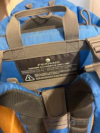 zaino porta bambino Ferrino, omologato fino a max 18kg bambino + 2kg carico (totale 20kg). Mancano i due tappini laterali come da foto.