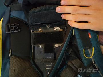 Incluso coprizaino, tutto il resto dello zaino è in ottime condizioni. Il volume ha due tasche principali, separabili, e due laterali belle grosse, oltre a delle retine laterali.