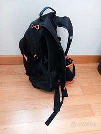 Zaino da 25 litri con imbottitura e rete posteriore con telaio elastico e molle d'acciaio.