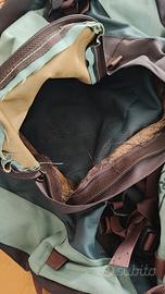 Regalo zaino Ferrino Young vintage. Dovrebbe essere 80L. Segni del tempo nelle tasche interne e uno strappo laterale sulla patta di chiusura che non ne compromette l'uso. In buone condizioni considerata l'età e i viaggi fatti.