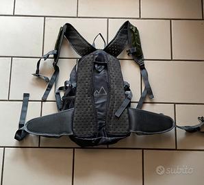 Zaino marca 8848, colore verde con due tasche laterali portaborraccia. Multiscomparti interni e vano per la sacca borraccia cin tubo. In buono stato di conservazione.