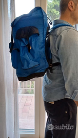 Zaino marca Intersport da montagna e trekking. Con struttura di metallo per la schiena. Pratiche tasche e porta borracce. Molto capiente, 50 litri circa. Misure da pieno 48x40x27.