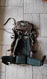 Zaino Invicta Transalp x scialpinismo. 70 litri, tascone superiore e inferiore, attacchi laterali x sci, taschine laterali sulla chiusura anteriore. Attacco x piccozza