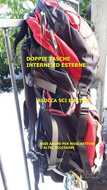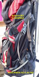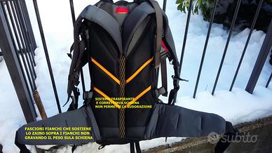 che in inverno con protezione e attacchi per qualsiasi accessorio ,piccozza,ramponi ,sci ,ciaspole ,unico nel suo genere come confort e comodo nelle escursioni ,sistema di sostegno sul corpo ,la sua capacità di non pesare e appoggiare sulla schiena ma solo sul bacino ,ZAINO MOLTO TECNICO,praticamente perfetto non rotture o buchi ,multi tasche per ogni accessorio .prezzo non trattabile pagato 320 vendo 150