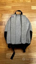 Vendo zaino Le Coq Sportif originale, colore grigio mélange con inserti neri sul fondo e ai lati, dettagli tricolore sulla zip frontale e logo ricamato in basso. Spallacci imbottiti, ampio scomparto principale, materiale esterno in poliestere/cotone e inserti in PVC. Lo zaino è in ottime condizioni generali, senza strappi né macchie. Prezzo trattabile; per altre foto o misure scrivimi pure in chat.