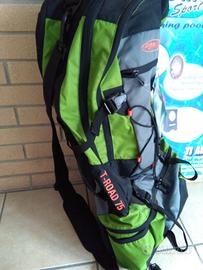 Vendo zaino da campeggio da 75 lt, nuovo mai usato colore verde e nero, schienale rinforzato.