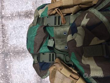 Surplus esercito turco zaino Alice con frame esterno in metallo, pari al nuovo con leggeri segni di usura del frame. Cinghie di chiusura modificate con l'aggiunta di comode clip come da foto. Aggiunte anche 2 tasche MOLLE in coyote Brown. Compreso anche di telo copri zaino anti pioggia in flectarn