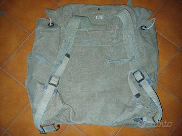 zaino militare in canapa, probabilmente anni 60/70, con sacco a pelo americano. condizioni praticamente perfette, solo alcune zone del sacco e dello zaino leggermente scolorite dal tempo.