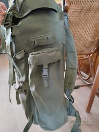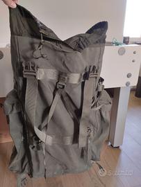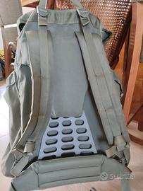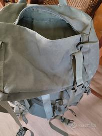 Zaino Tattico Militare - 100 Litri •Grande capacità è progettato per spedizioni prolungate, escursioni impegnative o usi tecnici che richiedono il trasporto di carichi pesanti. Caratteristiche Principali: •Capacità: Volume interno di 100 litri, ideale per contenere attrezzatura ingombrante, vestiario e provviste per più giorni. •Materiale: Realizzato in tessuto di tela robusta di colore verde oliva, resistente alle abrasioni e agli strappi. •Sistema di Chiusura: Dotato di cinghie di compressione regolabili con fibbie a scatto rapido in polimero ad alta resistenza per stabilizzare il carico. •Tasche Esterne: Presenza di ampie tasche laterali con chiusura a patta per un accesso rapido agli oggetti essenziali. •Punti di Attacco: Include diverse fettucce e anelli a "D" per agganciare esternamente attrezzatura supplementare (come sacchi a pelo o borracce).