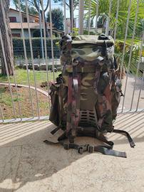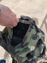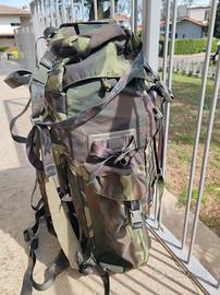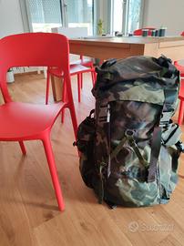 Zaino militare mai usato grandissimo, diverse tasche capienti e cinghie esterne per mettere materassini , tenda o altri accessori. Con supporto schiena come da foto