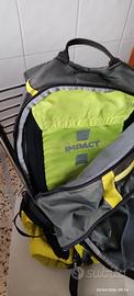 Lo zaino e ancora in buono stato e lavato e sterilizzato le cerniere sono tutte funzionanti e Senza sacca idrica e copri zaino