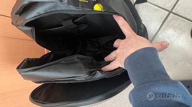 Zaino Padel tra i più completi e spaziosi, parte anteriore con scudo seni rigido, tasca dietro allo scuso per oggetti personali, grande tasca ce trale per tutto il necessario, tasca posteriore thermi per racchette, tasca laterale dx con rete, tasca laterale sx con cerniera, nuovo con etichette prezzato 80e mai usato, vendo per inutilizzo a 50
