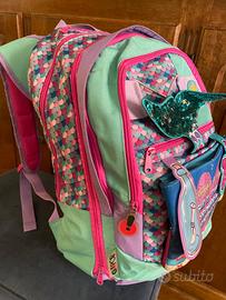 Zaino scuola GO PoP 5 in 1 Giochi Preziosi. Zaino tema sirena. Zaino estensibile con cerniera per aumentare la capacità di carico (+ 9 cm). Forma arrotondata "round shape", schienale imbottito, 3 scomparti e tasche interne per merenda e accessori, spallacci imbottiti e copricapo per pioggia.