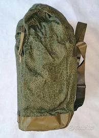 Zaino Polacco mimetismo “puma” alcuni lo chiamano mimetismo “serpente” era usato dai corpi speciali GROM polacchi Può essere indossato stretto sugli attacchi inferiori o esteso fino a quelli sopra variando la capacita da 40 lt. ad un max di circa 70 lt. fondo impermeabile imbracatura posteriore in cordura spessa 2 punti di fissaggio (uno inferiore, uno superiore) sul lato della borsa realizzato in cotone cordura/poliestere Dimensioni; altezza massima: 68 cm larghezza: 50 cm profondità: 32 cm guanti caldi stesso camo mai indossati ancora “legati” Softair oppure renactment ideale per trekking lunghi di piu giorni Outdoor