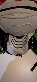 ottimo zaino come nuovo, da usare in ogni occasione, porta mascherone per chi lo usa sulle piste, fascia allacciamento con portacellulare