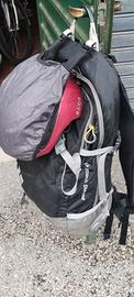 Zaino skialp Black Diamond Mod. Covert con sistema Avalung, usato pochissimo, con scomparto separato x attrezzatura soccorso, portacasco estraibile, tasca per maschera/guanti, tasca posteriore, tasca interna e taschine laterali su cintura. Versatile e capiente con cinghie compressione utilizzabili per trasporto sci in alternativa alle cinghie portasci posteriori.