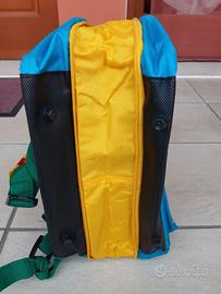 Vendo zaino colore azzurro e giallo, doppia cerniera con tasca frontale, estensibile, molto rubusto