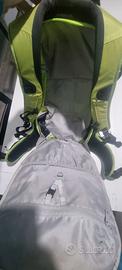 porta casco integrato, apertura principale dalla schiena, attacco per sci anche in diagonale.