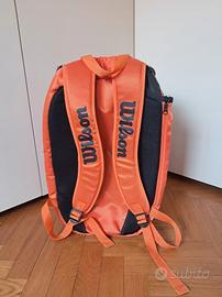 Zaino per tennis Wilson Burn Molded Lg, ha un ampio scomparto principale, uno scomparto per la racchetta e uno per le scarpe e quattro piccoli scomparti laterali di cui uno per le bevande.