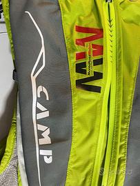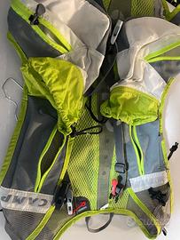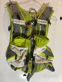 Zaino trail marca Camp in ottime condizioni in quanto usato pochissime volte. Riporta misura S ma veste tranquillamente la M ( io sono di torace 104 e mi veste bene) Lo zaino ha due portaborracce e 4 tasche davanti più quella grande posteriore con due taschine all'interno.