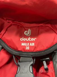 Zaino Deuter walk air 30 litri con aereazione schiena e protezione pioggia Usato pochissimo Le misure sono circa 56cm X 37 Colore rosso e grigio
