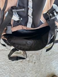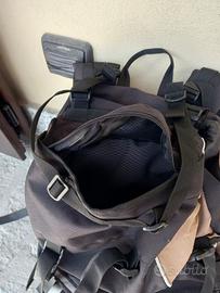 Zaino con dorso traforato traspirante, capacità 50lt; é dotato di spallacci imbottiti, sagomati e regolabili, cinghia a vita regolabile e cuscini lombari imbottiti traspiranti. Tasche laterali capienti porta borraccia, doppia tasca sul cappuccio; sul fondo ha un ampio accesso con chiusura a zip. È provvisto di attacchi funzionali e asole frontali per agganciare caschetto, cinghie porta ciaspole e bastoncini; ha cinghie di compressione laterali ideali per trasportare oggetti voluminosi. Incluso il copri zaino, collocato in una tasca dedicata sul fondo.